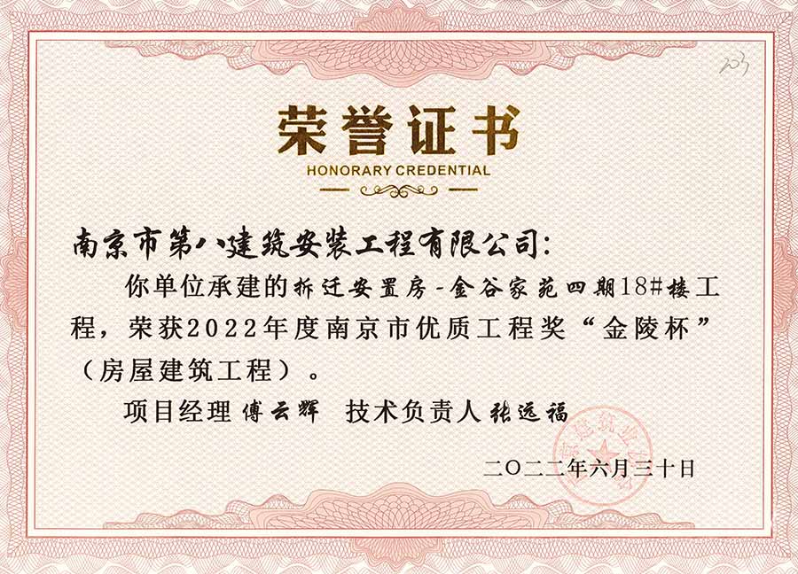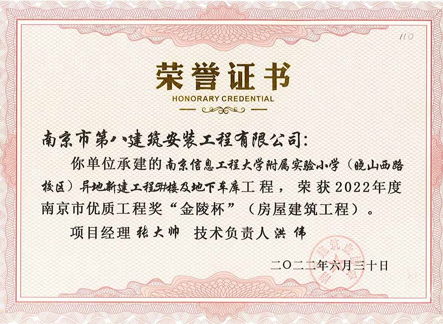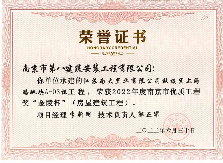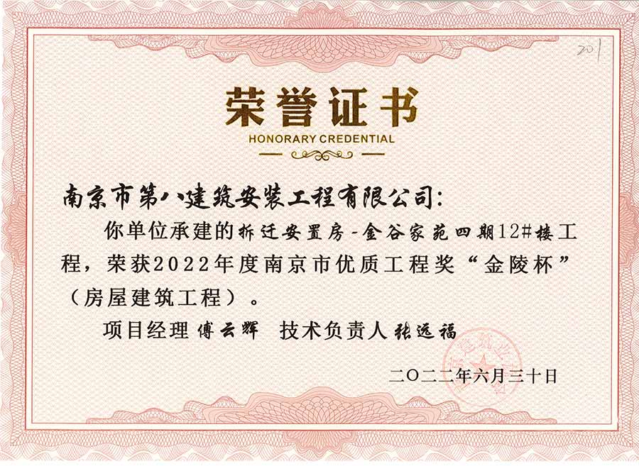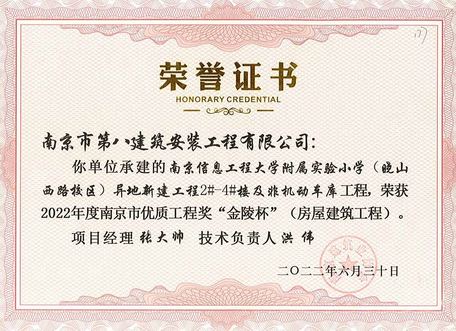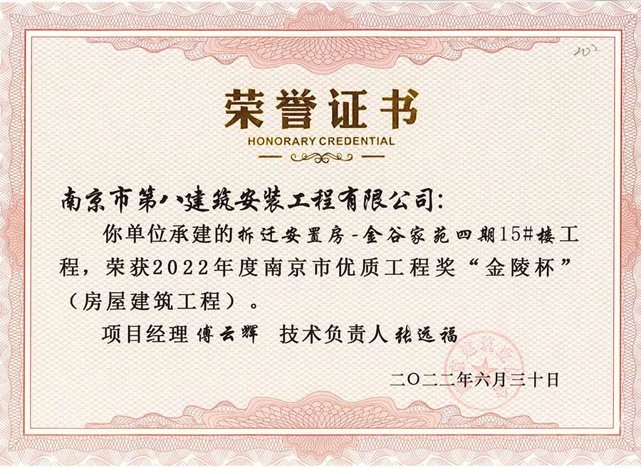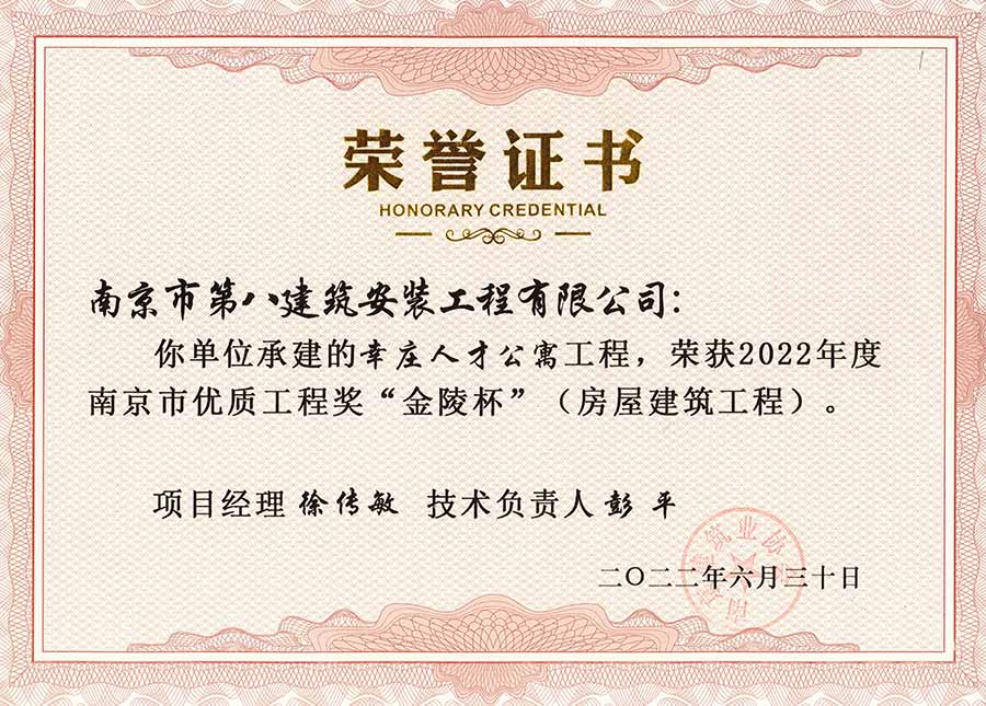 6月30日,南京建協(xié)下發(fā)了(2022)24號文件《關(guān)于公布2022年南京市優(yōu)質(zhì)工程獎“金陵杯”(房屋建筑類、軌道交通工程)項(xiàng)目名單的通知》,決定授予“幸莊人才公寓”等208個(gè)項(xiàng)目為2022年南京市優(yōu)質(zhì)工程獎“金陵杯”,我公司承建的13個(gè)項(xiàng)目榮獲榮譽(yù)。