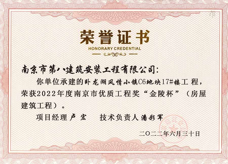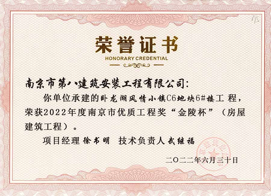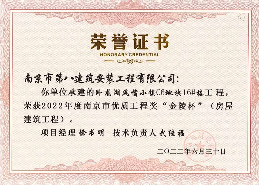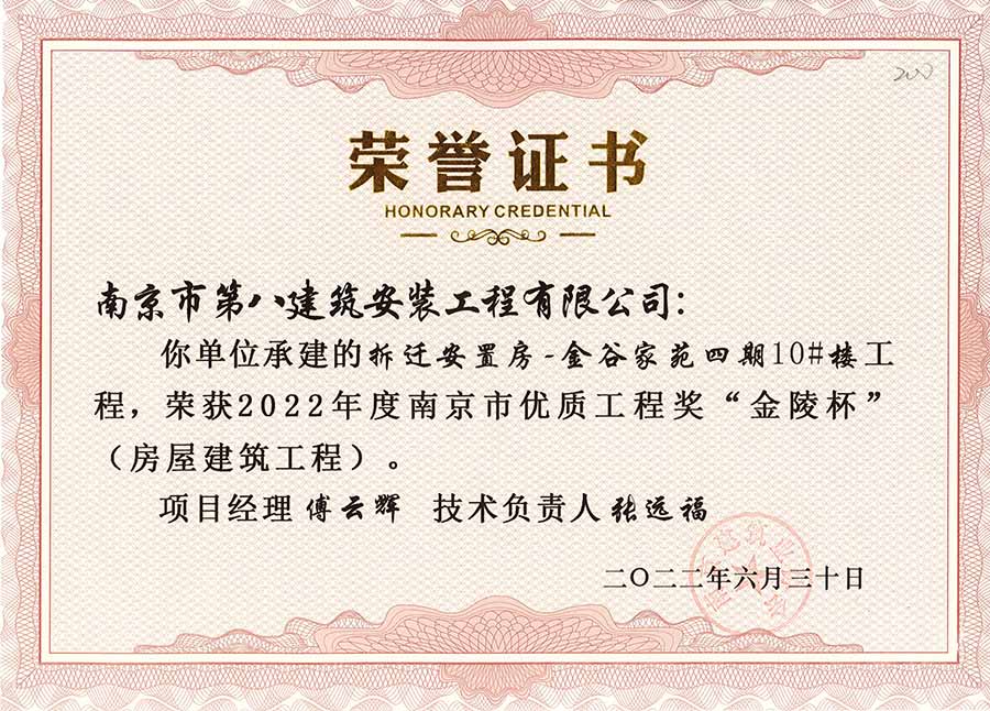 我公司承建的13個(gè)項(xiàng)目榮獲2022年優(yōu)質(zhì)工程“金陵杯”獎